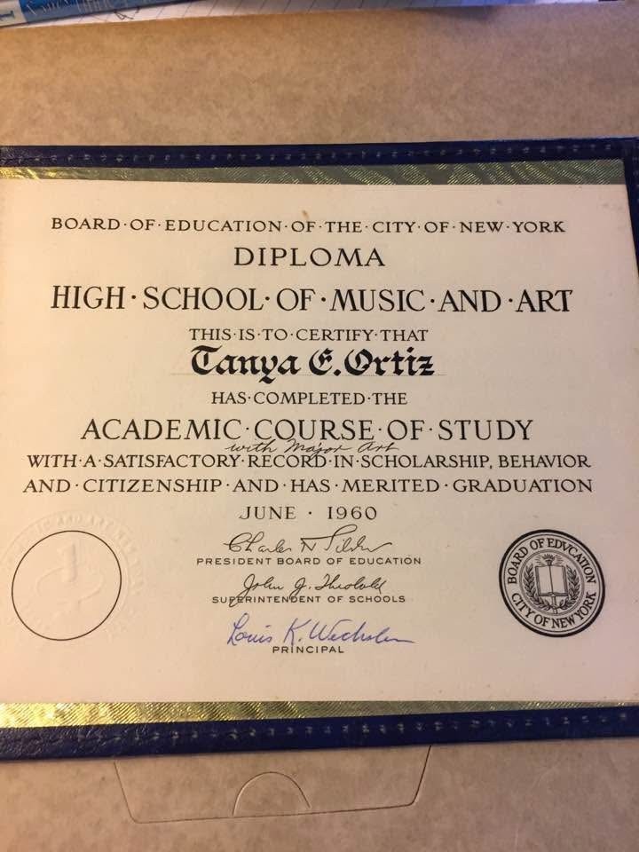 Tanya Ortiz was born in Spanish Harlem and raised in NYC. She graduated from The High School of Music and Art in 1960 and went on to graduate from The City College of New York in 1964 with a Bachelors of Arts and a Master of Fine Arts.