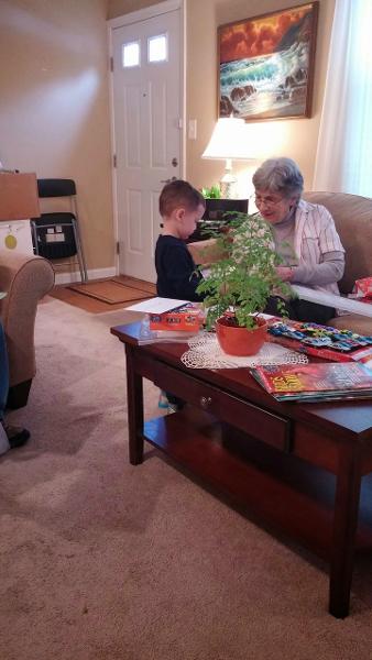 two great-grandchildren, brothers Ron and Jim Simprini, her large extended family of nieces and